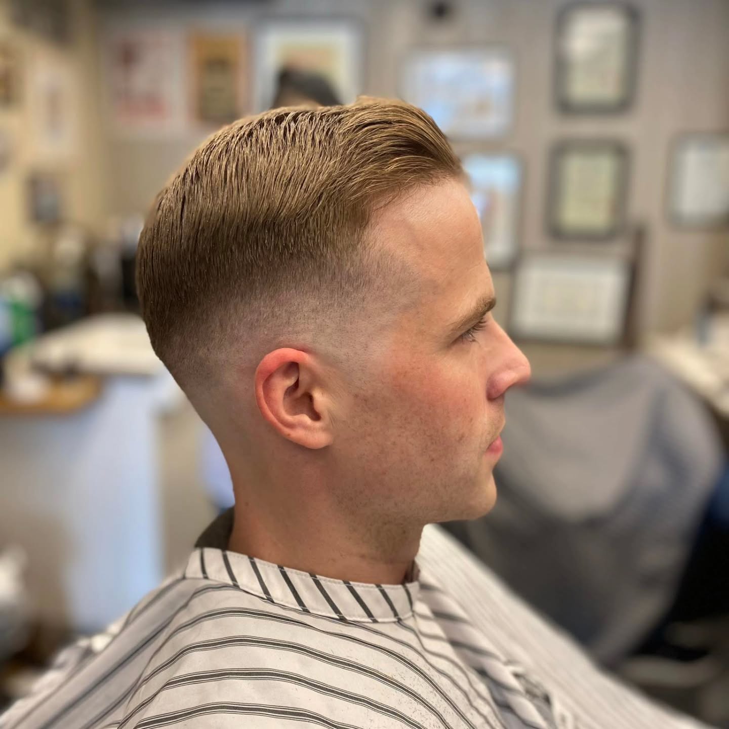We offer a variety of fades paired with scissor-cut styles on top, including pompadours, fringe crops, middle parts, and more.